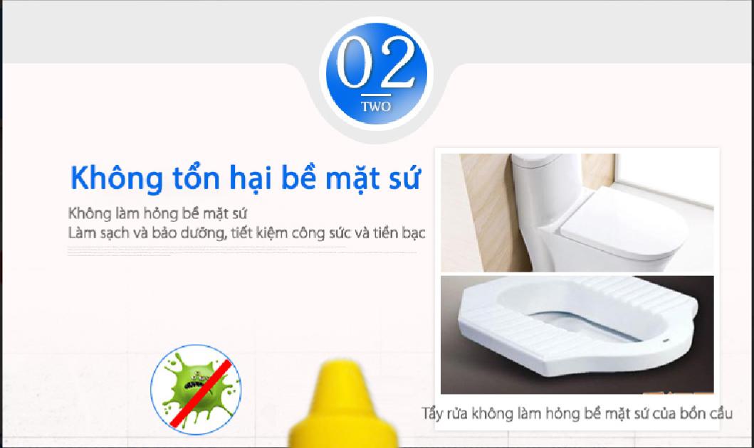 - Công dụng: Làm sạch bồn cầu, khử mùi, chống oxy hóa, bảo vệ bề mặt sứ.